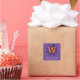 Peça de Aranha Halloween ou trate adesivos quadrados Monogramas com fundo roxo e família laranja inicial. Feliz Dia das Bruxas! Celebre a noite mais assustadora do ano com essa teia de aranha, aranha e monograma inicial de design em preto, branco e laranja. Com o texto "Trick or Tratat" que pode ser alterado para a sua citação desejada. Texto pronto para personalizar com seu nome e Inicial.