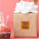 As palavras "Trick or Treat" estão em laranja claro, com um contorno preto e sobre um fundo laranja mais escuro. Esses adesivos são perfeitos para seus cartões de Dia das Bruxas, convites e bolsas de presentes de festas.