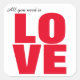 Este adesivo apresenta a palavra LOVE em letras grandes e negrito. No topo da lista, em uma fonte preta, estão as palavras "Tudo que você precisa é".