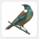 Uma ilustração pintada de uma ave neozelandesa. Isto é um tui. Tui são passarinhos com um tufo branco de penas embaixo de suas cabeças, daí é o nome inglês, o pássaro Pason. O pássaro da NZ está empoleirado em um galho e é desenhado em estilo angustiado.