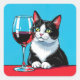 Adesivo Quadrado Tuxedo Cat With Red Wine