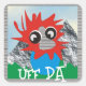 Vestido com um troll gordinho com nariz tricotado. Uff escreveu sobre seus pés.