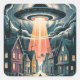 Adesivo Quadrado UFO Abduction Night Street Illustration