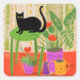 Adesivo Quadrado Um Gato Preto Com Plantas Domésticas