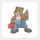 Adesivo Quadrado Urso como artesão com caixa de ferramentas
