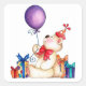 Adesivo Quadrado Urso de Aniversário com Balão