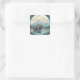Adesivo Quadrado Urso, Montanhas, Lago, Lua Cheia, Arte Ai
