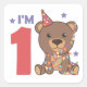 Adesivo Quadrado Urso Para O Primeiro Aniversário Para Crianças 1 A