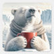 Adesivo Quadrado Urso Polar Com Mug De Café Vermelho