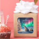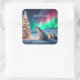 Adesivo Quadrado Urso Polar Mamãe Cubra Luzes de Norte de Árvore de