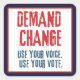 Justiça social / protesto / adesivo quadrado reformador com vermelho e azul "Mudança de demanda". Use Sua Voz. Usar o texto da sua voz"