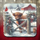 Adesivo Quadrado Vaca das Terras Altas Bonitas no Natal da Fazenda