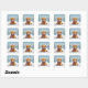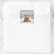 Este bonitinho adesivo de Natal tem uma ilustração do estilo aquarela de um bebê Highland Cow sentado num campo de neve balbuciosa durante um dia de inverno com um pano de fundo de pinheiros decorados em férias.