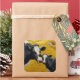 Uma vaca negra da raça Holstein amavelmente enigma o seu filhote precioso numa fazenda com colinas rolantes de amarelo ouro, e um velho celeiro de madeira ao longo de uma estrada rural. Trabalho de arte realista criada de uma pintura original de óleo pelo artista equino e da fauna selvagem Crista S. Forest.