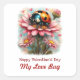 Adesivo Quadrado Valentine Love Bug on Blossoms Rose