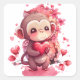 Adesivo Quadrado Valentine Macaco Coração Fofo