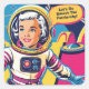 Um desenho animado da Vintage, nos anos 50, de uma astronauta feminina, com a citação de "Vamos Ir Esmagar a Patriarquia".