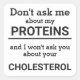 Este adesivo minimalista de diversão, com a frase "Não me pergunte sobre as minhas proteínas e não vou perguntar-te sobre o teu colesterol" em letras negras num fundo branco, é o presente perfeito para todos os veganos. Para pedidos personalizados, queira contactar-me em zolicestore@hotmail.com (permitir 1-2 dias úteis)