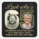 Olha quem tem 65 anos! Adicione um toque personalizado de acabamento a 65º favoritos de festa de aniversário, convites e notas de agradecimento com adesivos personalizados de quadrado fotográfico / selos de envelope. As fotos e todos os textos neste modelo são simples de personalizar (DICA DE IMAGEM: Uma maneira fácil de posicionar uma foto exatamente como você deseja é recortá-la antes de carregá-la no site do Zazzle. Se você precisar de ajuda adicional, por favor me envie uma mensagem :) O design preto e dourado apresenta duas fotos de sua escolha, caligrafia moderna com script manuscrito e tipografia clássica com deco de arte de vintage. Observe que o ouro é impresso a cor, não a folha metálica. A design neutra do ponto de vista do gênero também é adequada para um homem ou para uma mulher. Feliz Sessenta e cinco Aniversário!