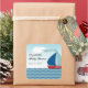 Esta etiqueta bonito do chá de fraldas caracteriza um gráfico de um veleiro bonito em ondas de água e em luz - fundo do céu azul e nuvens brancas subtis. O veleiro tem um vôo da bandeira da parte superior com texto que lê: É um menino! O texto customizável permite no centro que você adicione o nome da mãe nova e da data do chá.