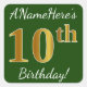 Adesivo Quadrado Verde, Faux Dourado 10º Aniversário + Nome Persona