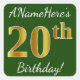 Adesivo Quadrado Verde, Faux Dourado 20 Aniversário + Nome Personal