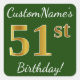 Adesivo Quadrado Verde, Faux Dourado 51 ruas Aniversário + Nome Per