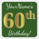 Adesivo Quadrado Verde, Faux Dourado 60º Aniversário + Nome Persona