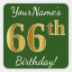 Adesivo Quadrado Verde, Faux Dourado 66º aniversário + Nome Persona