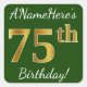 Adesivo Quadrado Verde, Faux Dourado 75.º aniversário + nome person