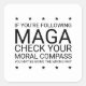 Um adesivo branco com uma design de estrelas de texto personalizável dizendo "Se você está seguindo MAGA, verifique sua bússola moral, você pode estar indo no caminho errado". Você pode mudar a cor das estrelas e o texto para sua preferência.