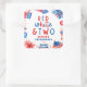 Adesivo Quadrado Vermelho, Branco e Dois Festa do segundo aniversár