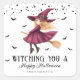 Adesivo Quadrado Vestindo Uma Bruxa Feliz De Halloween