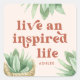 Viva um terraço de vida inspirado e um adesivo retrorreflector de aspas com nome personalizado e plantas suculentas de aquarelas.