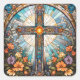 Adesivo Quadrado Vidro Sagrado Cruz com Flores