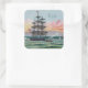 Esta imagem antiga mostra um navio elegante na vela de cheio saindo do porto. O céu colorido de azul e laranja é um elogio caloroso à água verde azul. Está pronto para a sua personalização.