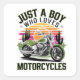"Esse design ousado e vibrante ilustra detalhadamente uma motocicleta clássica com detalhes verdes e brancos elegantes, colocados contra um pôr do sol retrô em tons de laranja, rosa e amarelo. O fundo inspirado no deserto inclui cactos, acrescentando uma vibração robusta e aventureira. O texto "Only a Boy Who Loves Motorcicletas" é exibido com destaque em letras ousadas e estilizadas, fazer esse design perfeito para entusiastas de motocicletas e motociclistas que todos geraram trabalho de arte