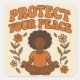 Mantenha calma, confiança e clareza com este design retrógrado. Apresentando uma mulher serena em meditação rodeada por florais florescentes e a frase empoderadora "Proteja a Sua Paz", esta ilustração quente e suja irradia a força interior e a energia de cura.