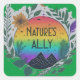 O inspirado na natureza, mostra a mensagem "Aliado da Natureza" em um vibrante gradiente do arco-íris. Ao redor do texto estão ilustrações coloridas de folhas, flores e montanhas, criando uma conexão harmoniosa entre o usuário e o mundo natural.