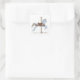 Esta design de carrossel azul vem com listras azuis e brancas no cavalo e sela marrom e sombreado.
