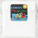 Adesivo Quadrado Vinheta de Aniversário do Partido piscina