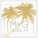 Palmeiras Douradas com monograma e data de casamento. Clique em "personalizar mais" para tentar diferentes tipos de letra, mover o trabalho de arte e escolher qualquer cor de fundo que você precise para corresponder ao seu casamento ou festa.
