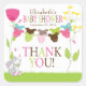 Um adesivo de chá de fraldas de menina bonito, com um menino doce e uma roupa de bebê com um coelhinho fofo e uma linha de roupas com um menino e roupas de menina em cor rosa, azul, verde limão e marrom pendurados em uma flor azul e amarela. Vinheta perfeita para favores de bebês ou selos de envelope de convite! Vestido perfeito para o chá de fraldas de gêmeos do seu filho! Os convites correspondentes, selos postais e notas de agradecimento estão disponíveis no nosso compro em www.celebrateitinvites.com. ©Erin Bradley Studios