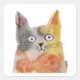 Adesivo Quadrado Vinheta de Gato de Aquarela