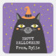 Um gato preto bonito de Halloween com um chapéu decora este adesivo. Personalize-o para as guloseimas de Halloween, ou para uma festa de Halloween. Projetado para você pelo Blackberry Boulevard.
