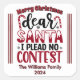 Um adesivo de Natal brilhante mostra a frase Caros Papais noeis, eu não defendo nenhum concurso em letras ousadas e festivas. As canetas doces adicionam um toque encantador. Perfeito para decoração de feriados ou embrulho de presentes, ele captura o espírito dos desejos de feriados brincalhões.