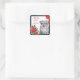 Neste adesivo, um cão majestoso Schnauzer é enquadrado com buquês de poinsettia vermelho de aquarela Holiday. Uma borda externa de verde azul correspondente rodeia o branco interior, e mais imagens de poinsettia estão no canto superior direito. O texto vermelho e lacrimogêneo diz "FELIZ ANO NOVO NATAL MERRY". Bonito para sua correspondência de Férias ou pacotes de presentes.