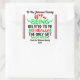 Um adesivo quadrado colorido clareia um presente embrulhado. Adorado com textos brincalhões e decorações de férias, expressa a alegria de dar.