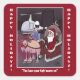 Os palitos com uma caricatura engraçada sobre Papais noeis e Rudolph a rena vermelha. A imagem, o fundo e o texto podem ser personalizados. Arte original de DBcartoons.