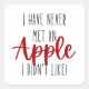 Faça um delicioso "Dia Internacional da Maçã" com uma única arte da Apple impressa no Pau Quadrado. Este adesivo tem "Eu nunca me encontrei em maçã, eu não gosto!" design de aspas bonitinhas. Pode comprar-se este adesivo em 2 tamanhos diferentes, com acabamento brilhante e fosco. 🍎 coma bastante maçã, mantenha o corpo saudável 🍏